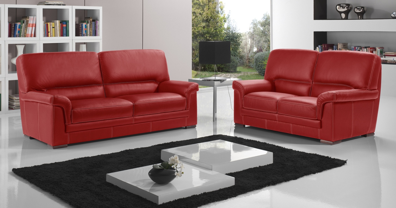 Canape Cuir De Vachette Bombay 3 2 Places Rouge