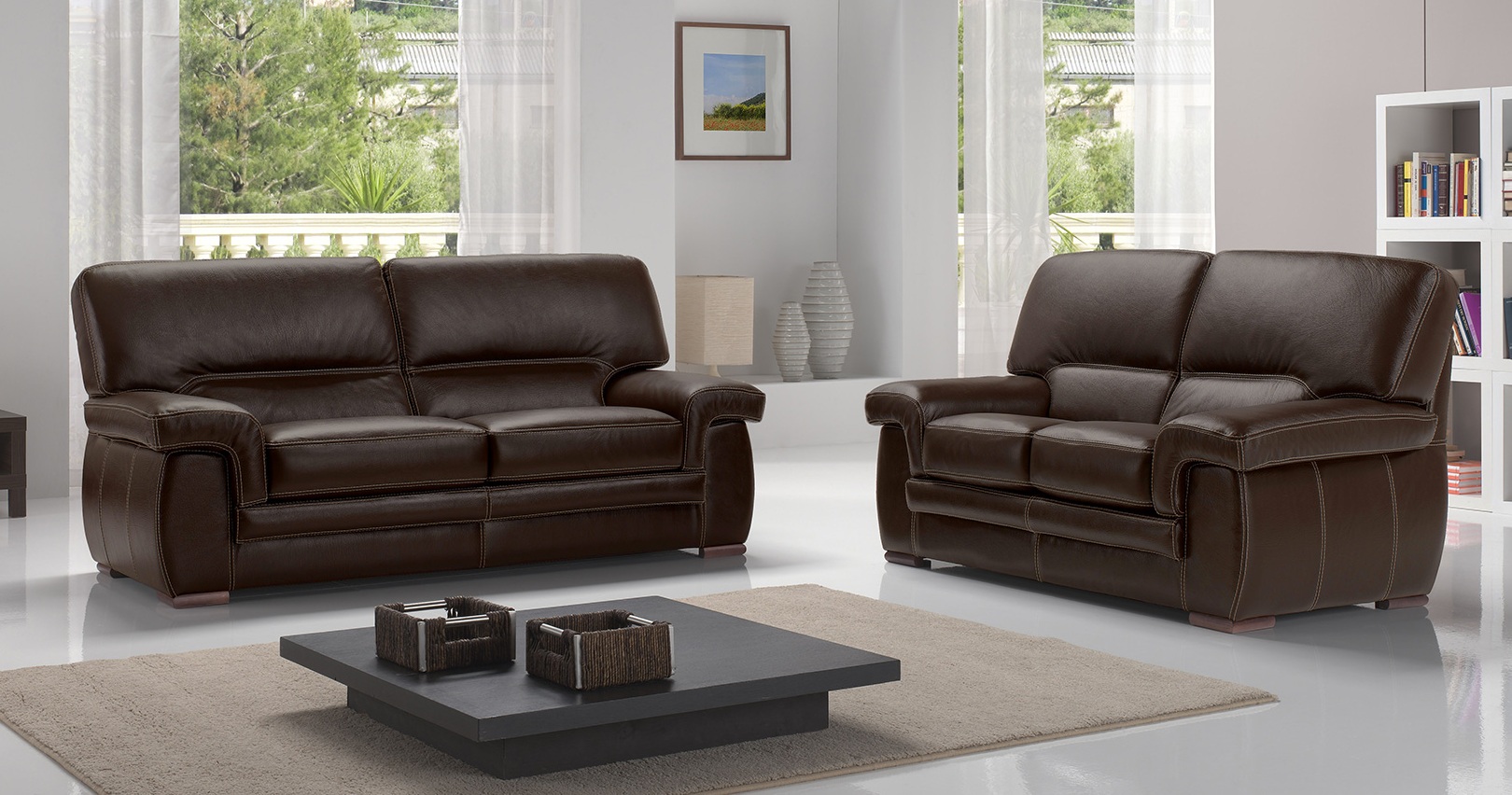 Canape Cuir De Vachette Kit 3 2 Places Chocolat