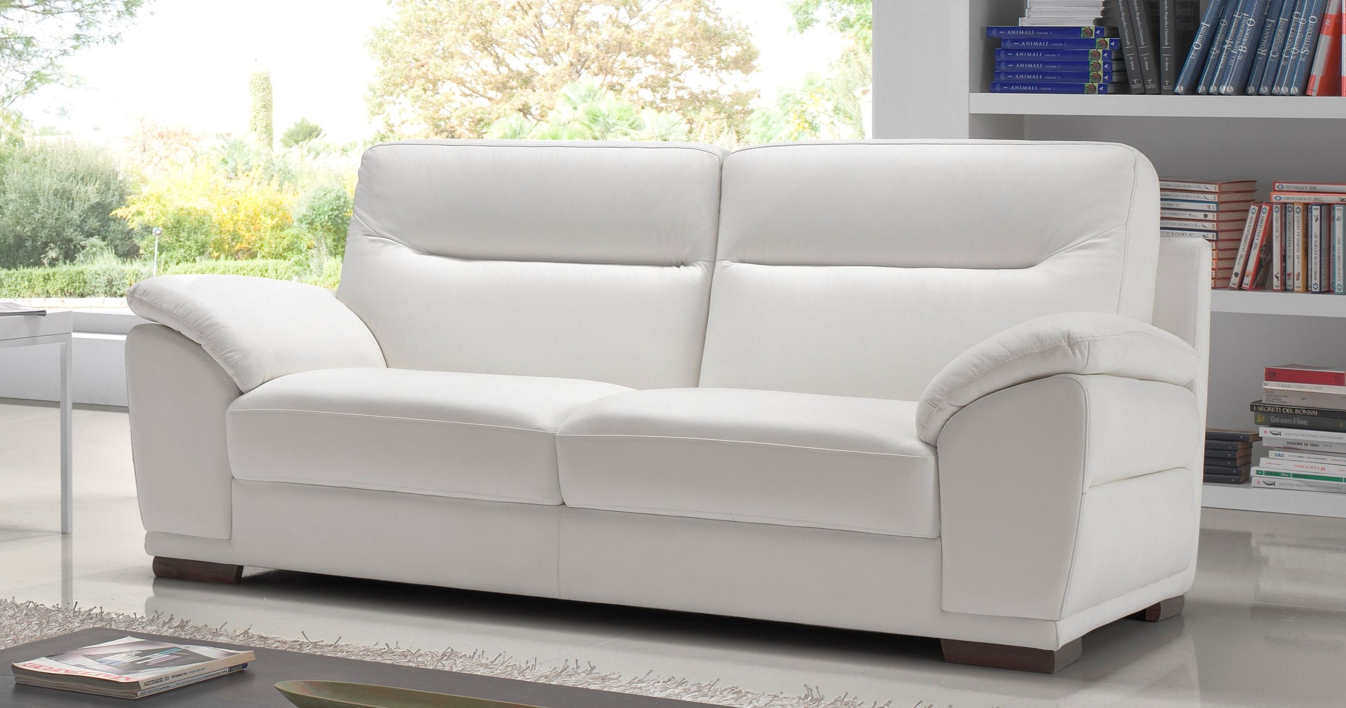 Canape Convertible 2 Places Cuir Blanc Avec Tetieres Relevables Bari