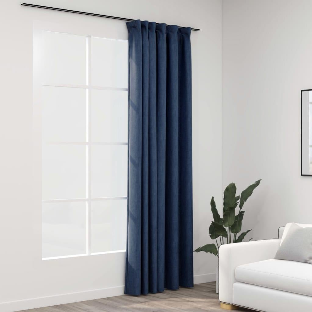Rideau Occultant D Aspect De Lin Avec Crochets Bleu 290x245 Cm Vidaxl Leroy Merlin