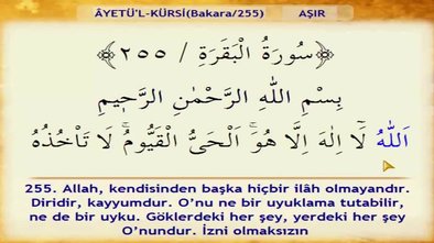 Ayetin Medine döneminde indiği rivayet. Bu sebeple şeytan ve diğer kötü şeylerden korunma duası. AYETEL KÜRSİ OKUNUŞU - Ayetel Kursi Duası Arapça Oku Ve Dinle - Türkçe Anlamı, Meali, Tefsiri ve Faziletleri Ayetel Kürsi duası Kur'an-ı Kerim'de yer alan Bakara Suresi’nin 255.