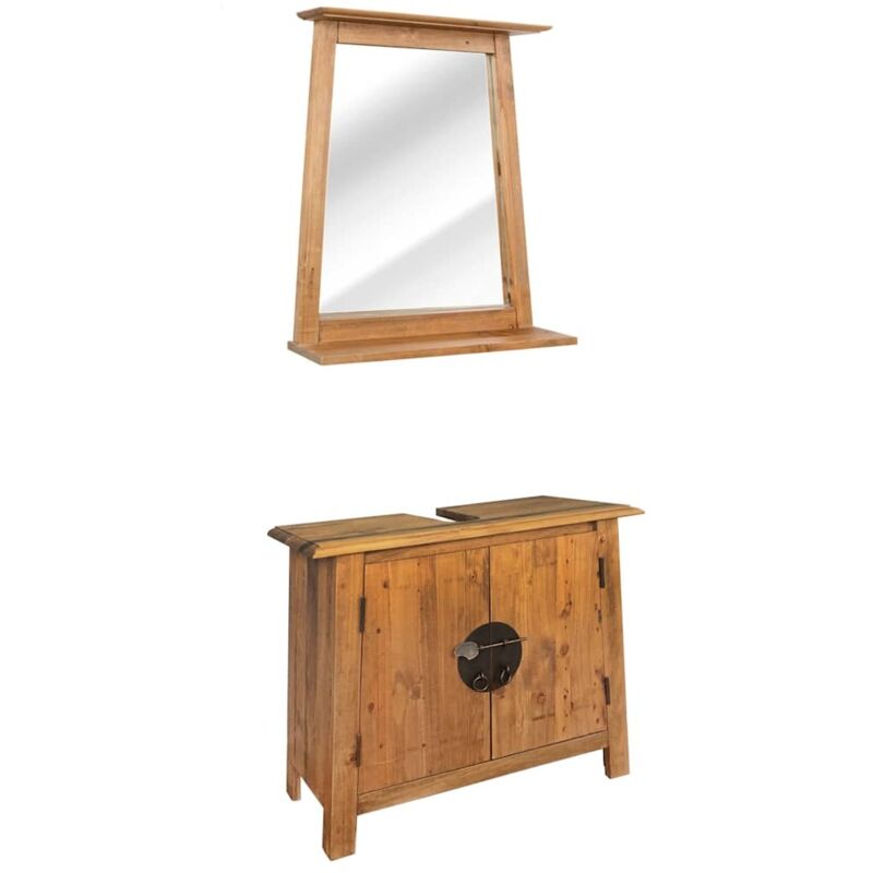 Ensemble Meuble Sous Vasque Et Miroir En Bois Massif Recycle