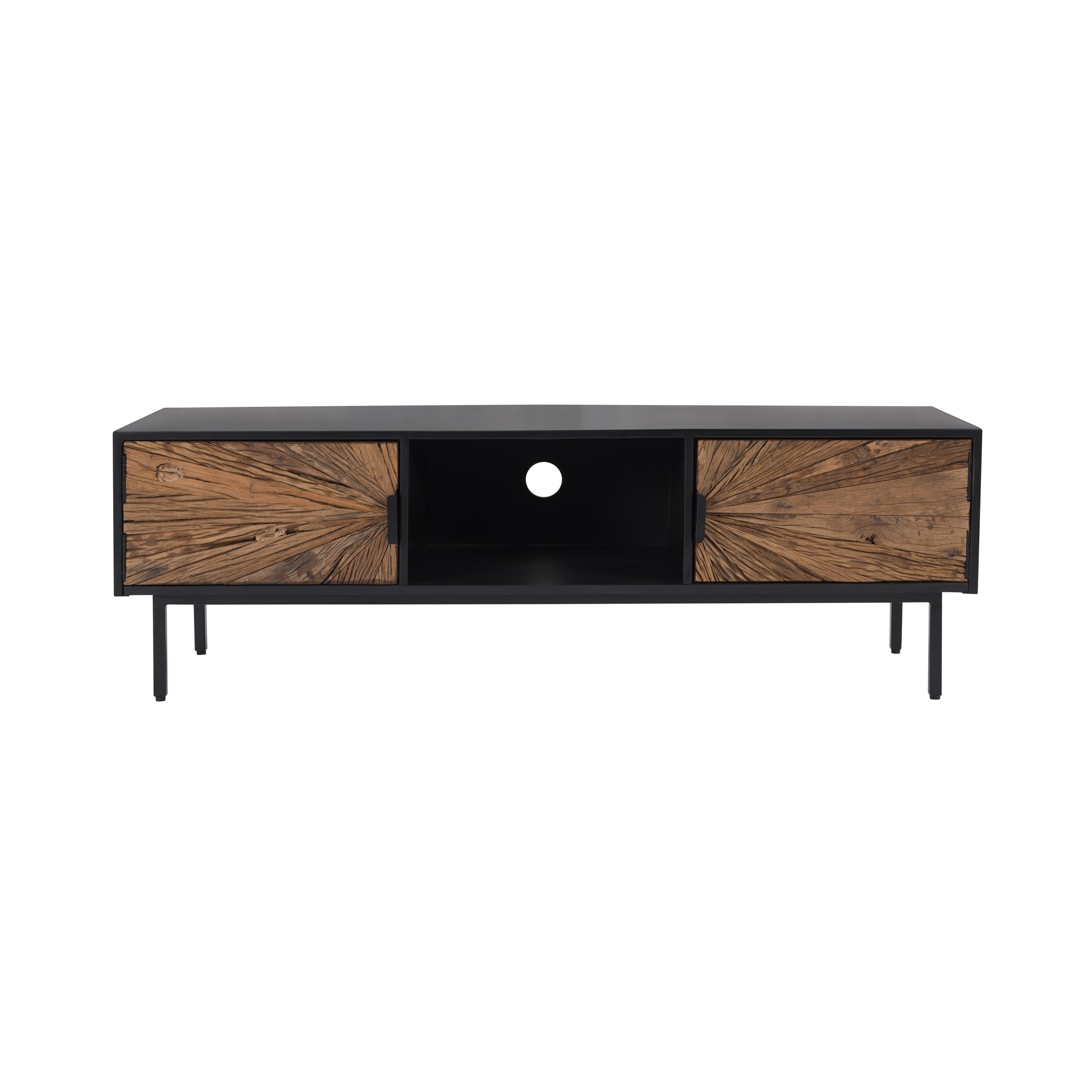 Meuble De Television En Bois Recycle Avec 2 Portes Coulissantes Konstilo