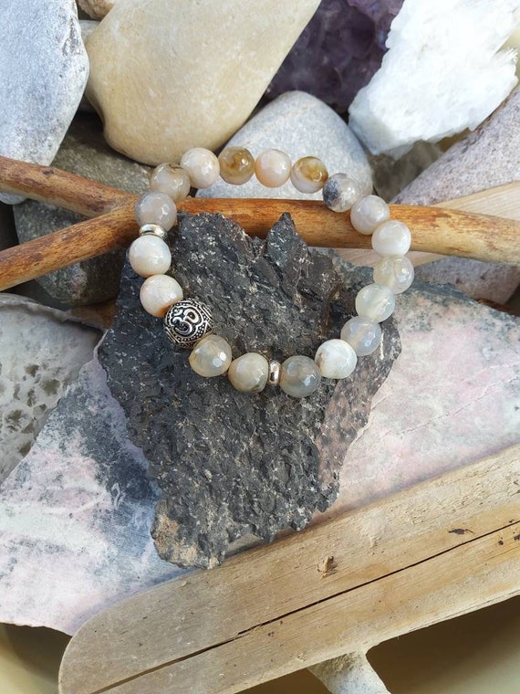 Bracelet Pierre Semi Precieuse Agate Mantra Om Etsy