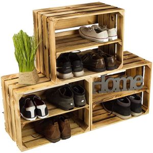Lot De 3 Caisses A Chaussures En Bois Flamme Achat Vente Pas Cher
