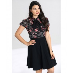 Robe Fourreau Pin Up Retro Noire Decoree De Fleurs Rouge