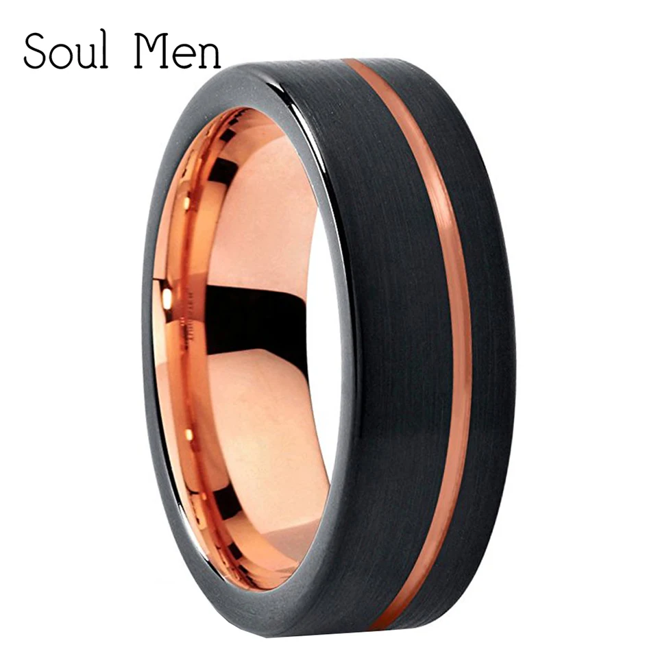 21 Men 8mm Tungsten Ring Black Rose Gold Silver Line Wedding Band Engagement Ring Mens Party Jewelry Bague Homme From Gunot 58 02 Dhgate Com