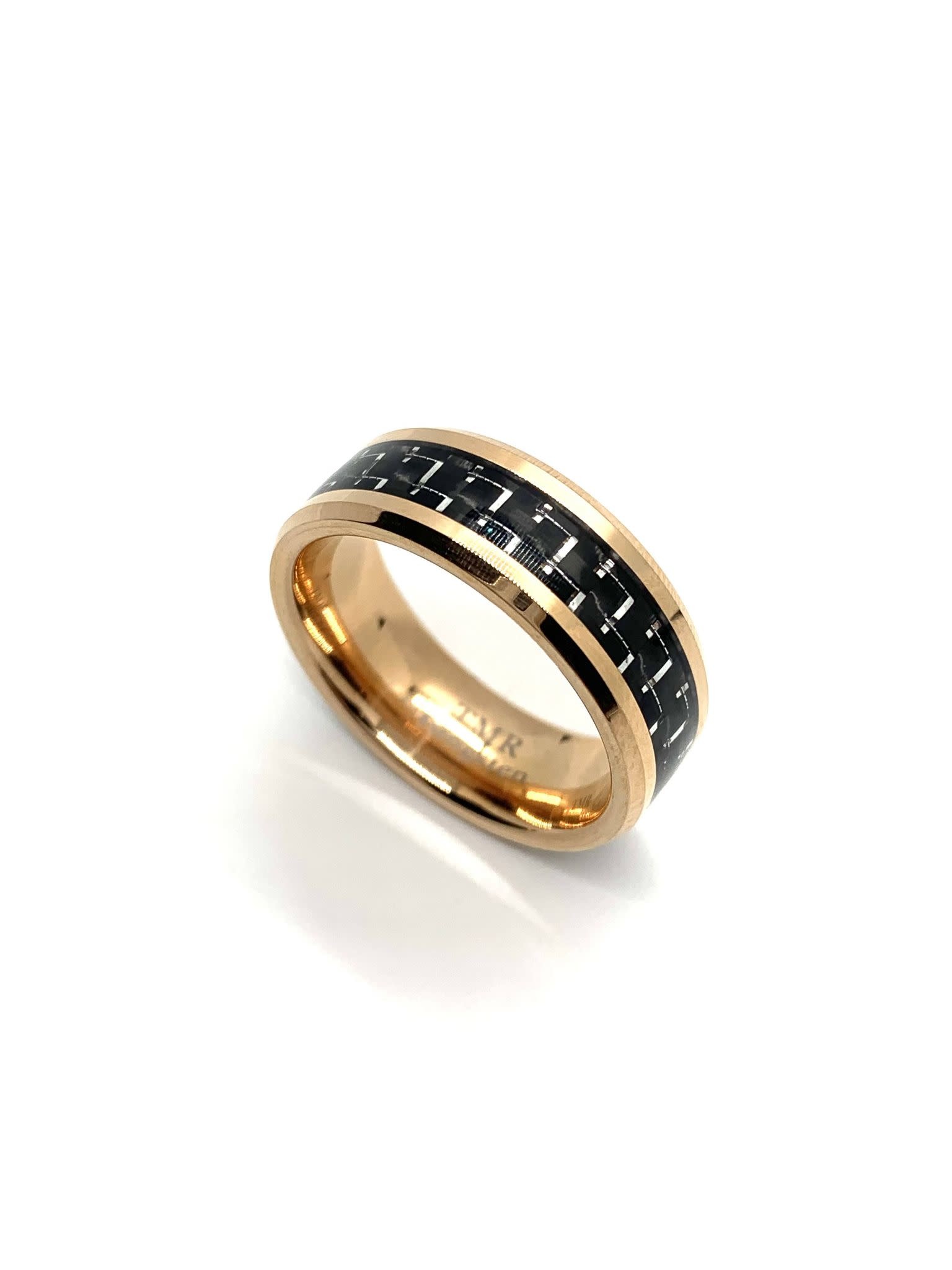 Vente Bague Homme En Acier Noir Et Cuivre A Encoches Avec Filins