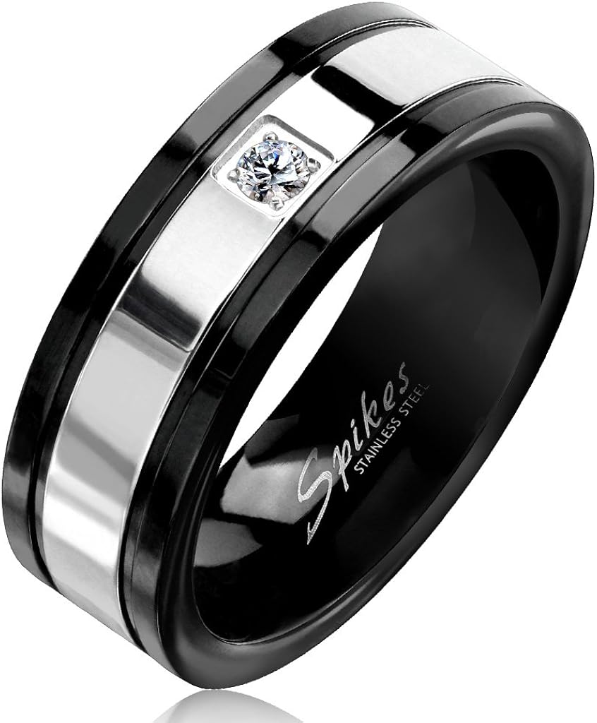 Et Oxyde De Zirconium Tata Gisele C Bague Homme En Acier Inoxydable Argente Et Noir Solitaire Brillant Transparent Bijoux Bagues