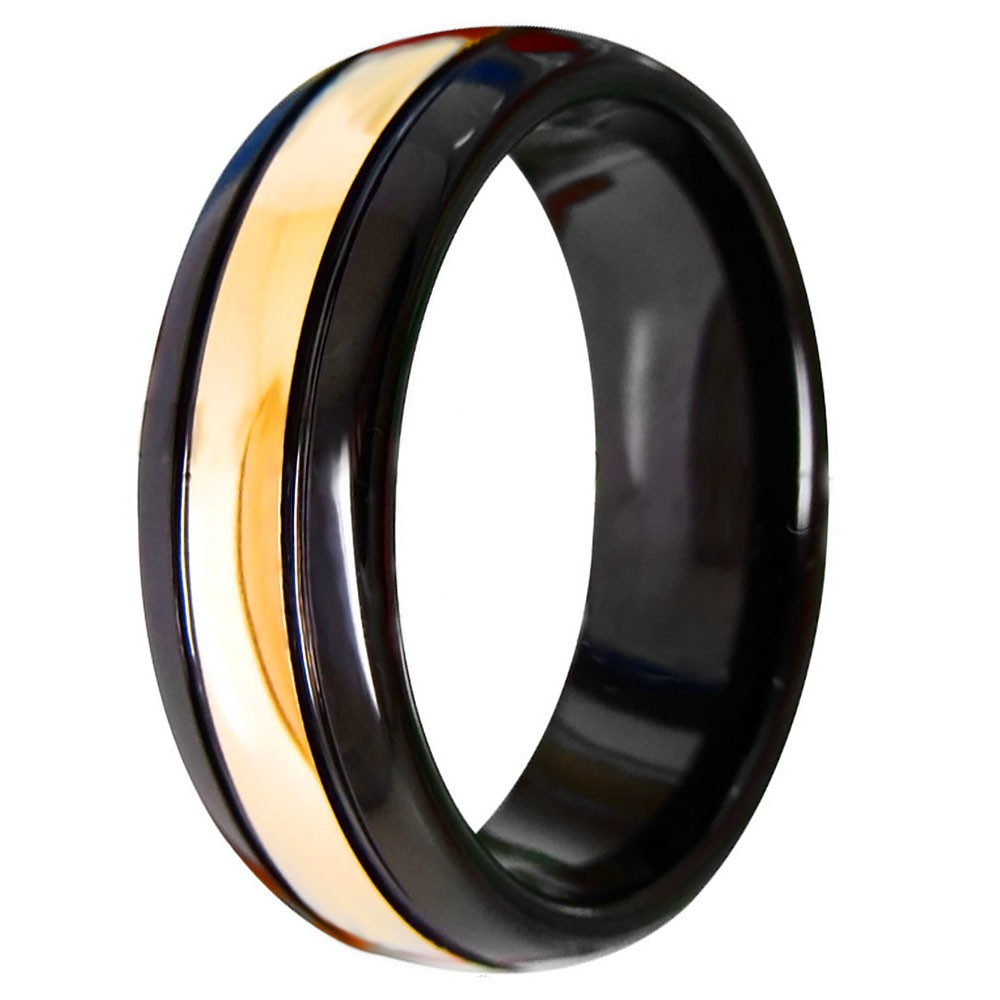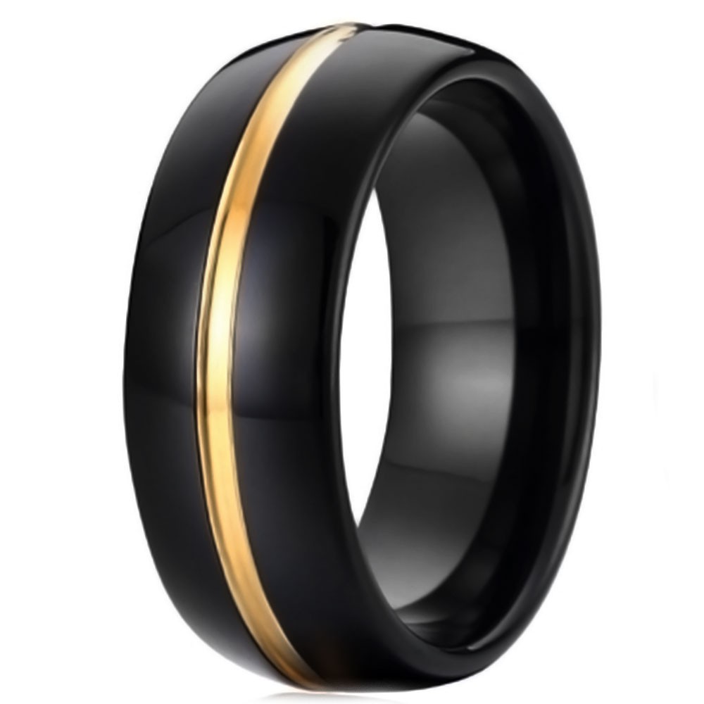 Men S Black Tungsten Personalized Domed Ring With Gold Plated Center Groove Bijouxstore Webid 848