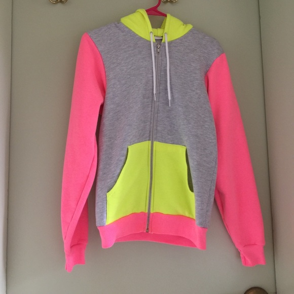 American Apparel Jackets Coats Never Worn American App Neon Colorblock Zip Hoodie Poshmark