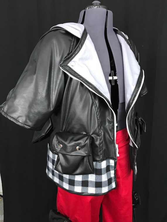 Throughout the Kingdom Hearts Saga, there was another Keyblade Wielder One with a far greater destiny and a strong muscular build, wearing a black open leather jacket with a dark grey colored shirt underneath it, black jeans, black gloves, and black military boots with straps on them He also wore a utility belt that had four mediumsized. Samurai V Bomber Leather Cyberpunk 77 Jacket Cyberpunk 77 Jacket, a game of the future as mentioned in the titleBased on a subgenre of science fiction which mainly focuses on the narrative of “Combination of lowlife and high tech”. Welcome to H&M, your shopping destination for fashion online We offer fashion and quality at the best price in a more sustainable way.