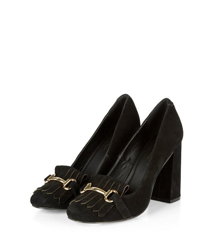 Mocassins Noirs En Daim A Talons Evases New Look