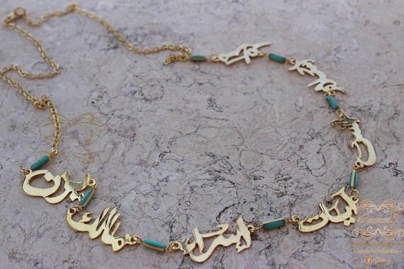 Noms De Famille De Calligraphie Arabe Collier Avec Perles En Etsy