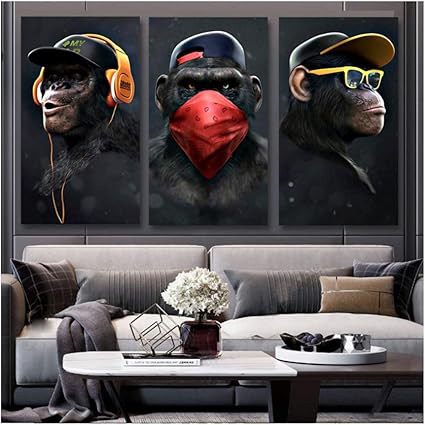 Niemengzhen Impression Sur Toile Animal Image Toile Imprime Peinture Moderne Drole Pensee Singe Mur Art Affiche Pour Salon Decor A La Maison 27 5 X47 2 70x1 Cm X3 Sans Cadre Amazon Fr Cuisine Maison