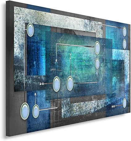 Feeby Tableau Imprime Xxl Tableau Imprime Sur Toile Tableau Deco Canvas 60x80 Cm Abstraction Cercles Rectangles Cadres Gris Bleu Amazon Fr Cuisine Maison