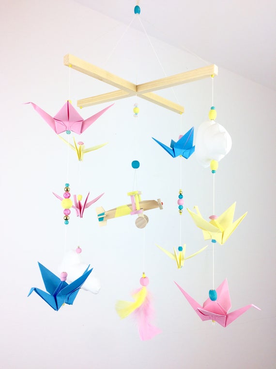 Mobile Bebe Avion Origamis Jaune Marron Bleu Et Rose L Atelier Des Createurs