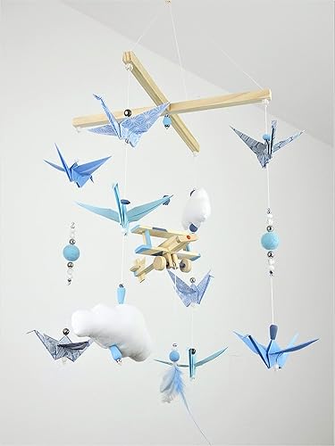 Mobile Bebe Origami Bois Bleu Ciel Amazon Fr Handmade