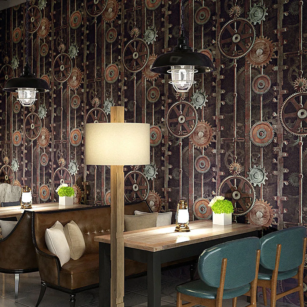 Nouveau Retro Style Industriel Papier Peint Engrenage Fer Forge Internet Cafe Restaurant Studio Magasin De Vetements Papier Peint 0 53 10m Aliexpress