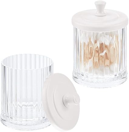 Mdesign Pot De Rangement A Maquillage En Plastique Lot De 2 Bocal Plastique Avec Couvercle Pour Sel De Bain Coton Etc Rangement Maquillage Pour Le Lavabo Transparent Et Blanc