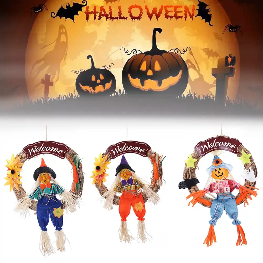 Halloween Easter Scarecrow Door Decoration Halloween Loop Pumpkin Ring Doll Door Decoration Wreaths Garlands Aliexpress