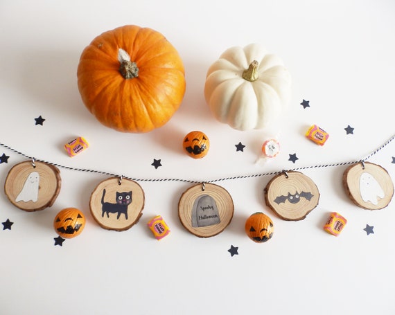 Halloween Garland Spooky Cute Decoration Halloween Wood Etsy