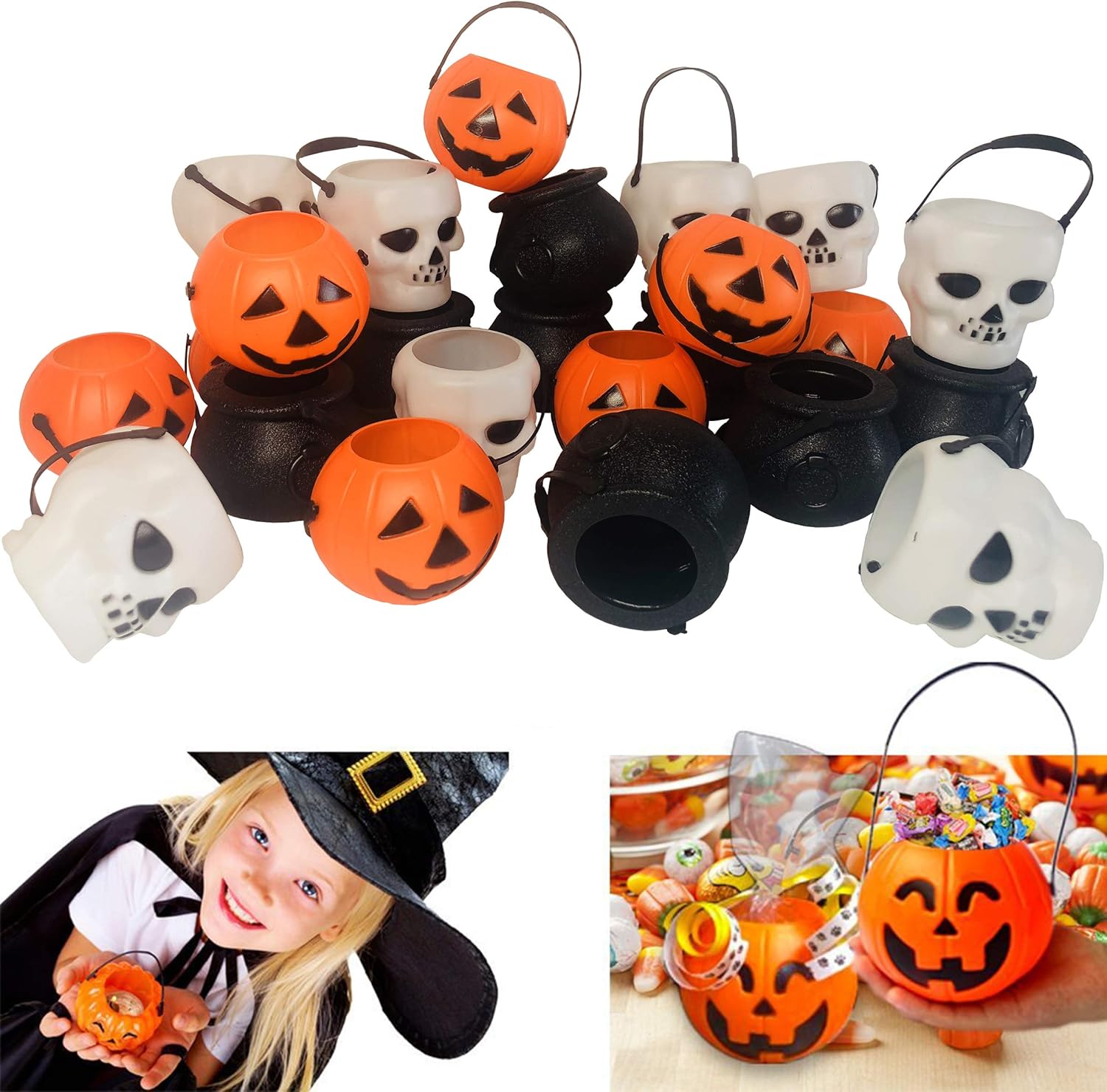 Amazon Com 24 Pack Halloween Mini Plastic Candy Buckets Trick Or Treats Candy Holders For Halloween Decoration Halloween Party Favors Supplies Witch Bucket Pumpkin And Skull Toys Games