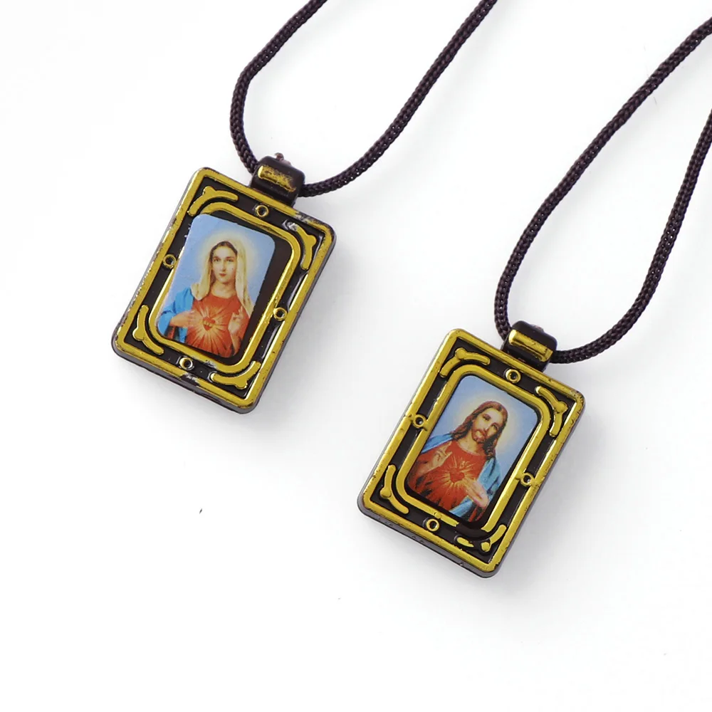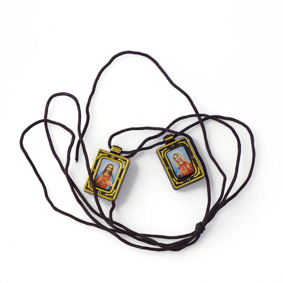 Carte De Priere Scapulaire Medaille Dore Sacre Cœur De Jesus Et Notre Dame Du Mont Carmel Catholique Medailles Homme Bijoux
