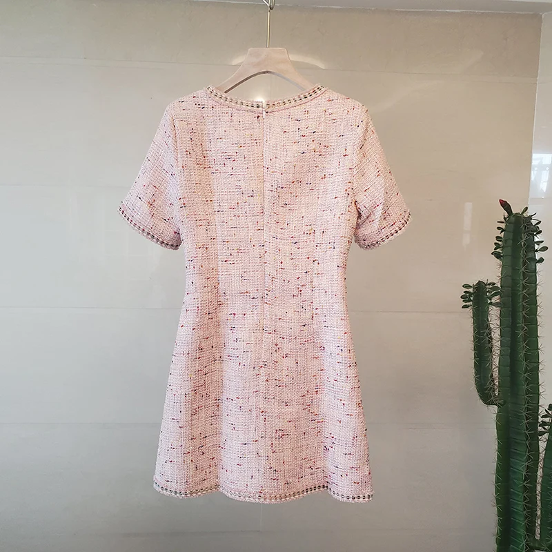 High Quality Autumn Graceful Tweed Ladies Dress Robe Femme T Round Neck Short Sleeve Dress Robe Vintage Women Dress K Lazada Ph