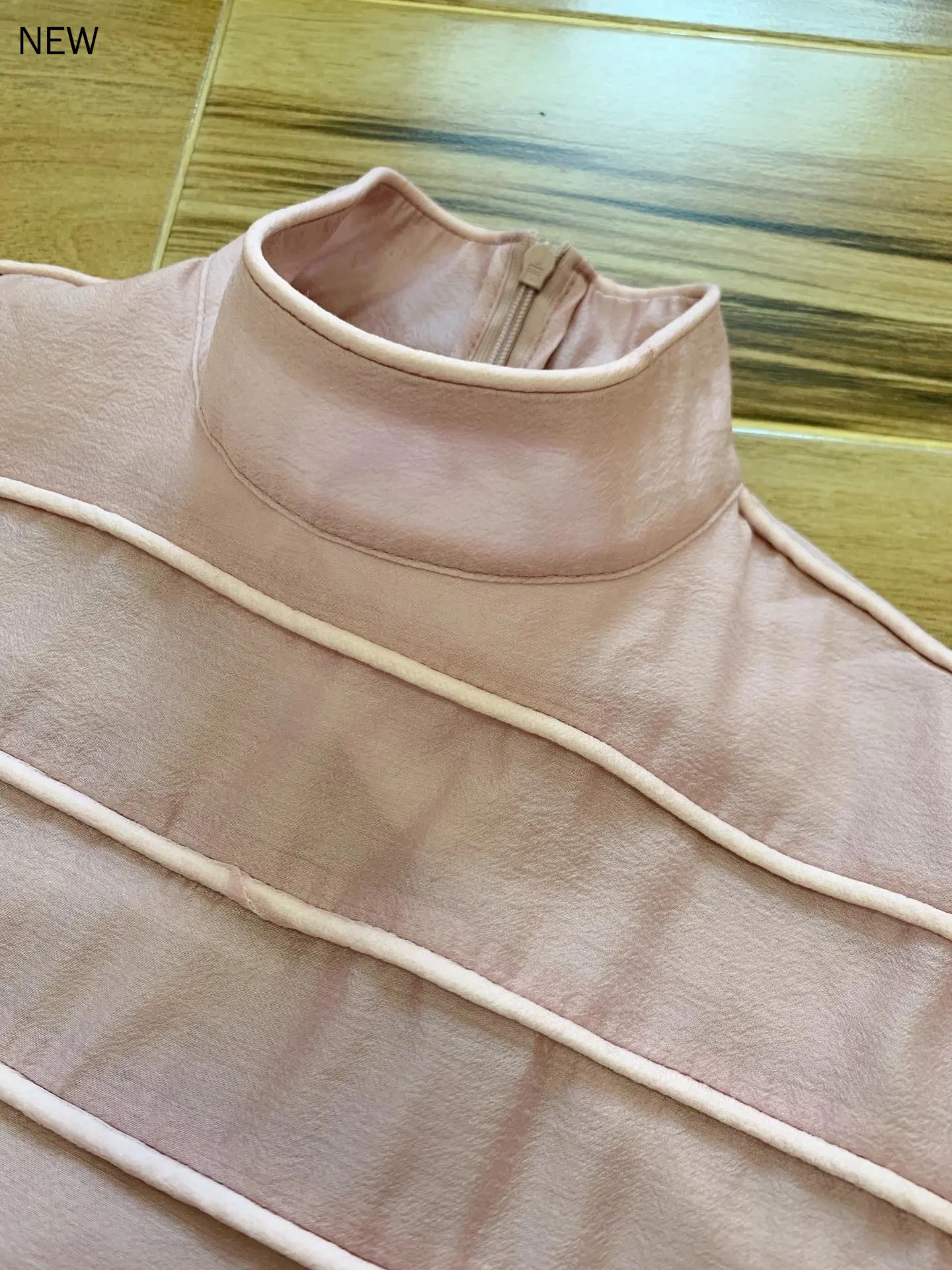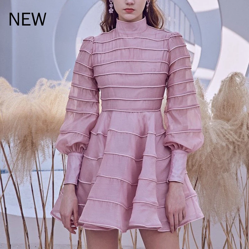 Nouvelle Robe Vintage Femmes Printemps Ete Rose Lanterne Manches Rayure Celebrite Robes De Soiree Col Roule Vestidos S50