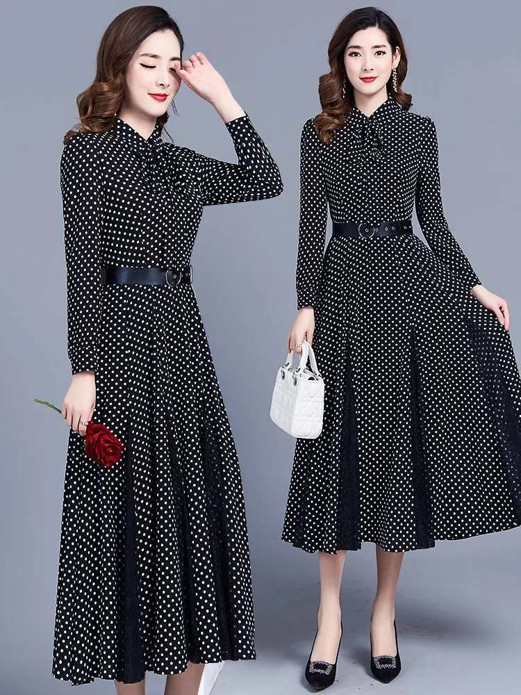 Printemps Ete Robe Dames Robes Vintage A Pois Longue Robe Femmes Parti Noir Elegant Robe De Grande Taille Vestidos My2334 Aliexpress