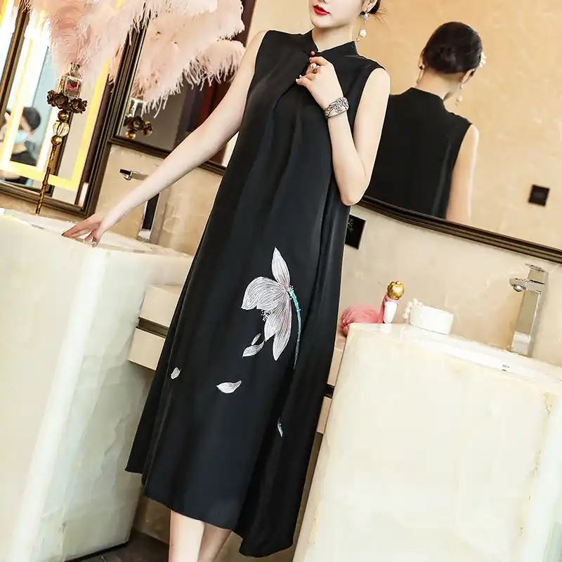 Black Elegant Chinese Dresses Summer Cheongsam Vietnam Traditional Dress Robe Vintage Femme Chinese Dress Qipao Cheongsams Aliexpress