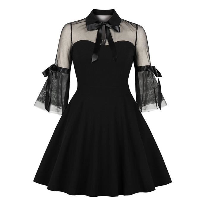 Printemps Automne Nouvelles Femmes Maille Couture Robe Vintage Pansement A Ligne Mini Robes Manches Evasees A Type Noir Noir Achat Vente Robe Soldes Sur Cdiscount Des Le Janvier Cdiscount