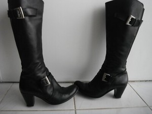 Grandes Bottes En Cuir Bande Elastique Mollet Forts Boucles Metal T 39 Ebay