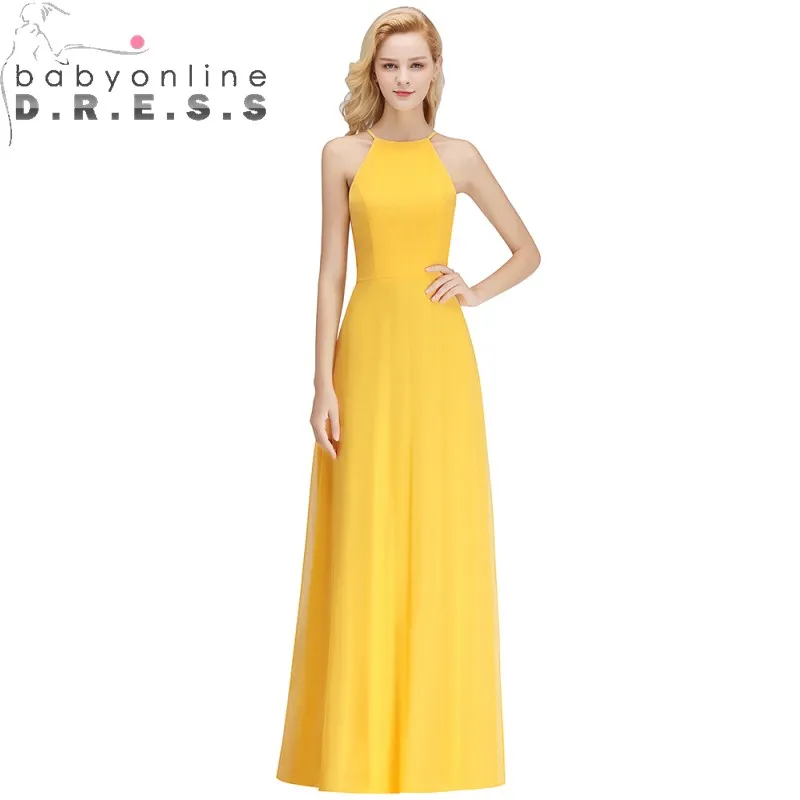 Babyonlinedress Charmante Couleur Jaune Robe De Demoiselle D Honneur Sexy Licou Mariage Invite Robe Sans Manches Longue Robe En Mousseline De Soie Aliexpress