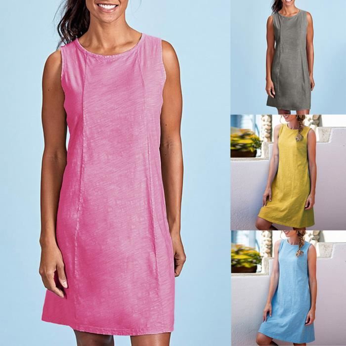 Casual Women O Neck Manches Coton Lin Robe De Soiree De Mariage Invite Jaune Jaune Achat Vente Robe Soldes Sur Cdiscount Des Le Janvier Cdiscount