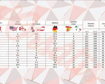 Tableau Correspondance Taille Bague Us France Partager Taille Bonne