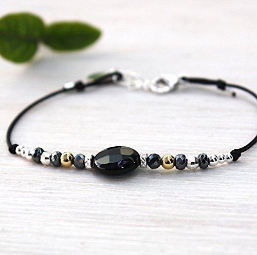 Bracelet Cordon Pierre De Gemmes Agate Noire Et Perles Argent 925 Amazon Fr Handmade