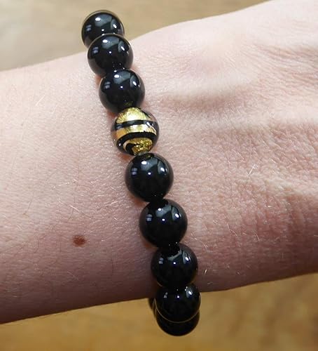 Bracelet Agate Noire Pierre Veritable Amazon Fr Handmade