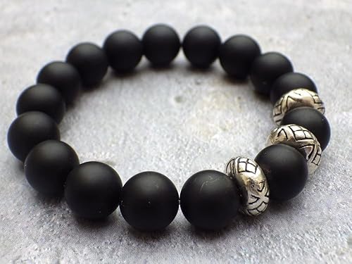 Bracelet Pour Hommes En Perles D Agate Noire Et Perles Tibetaines Amazon Fr Handmade