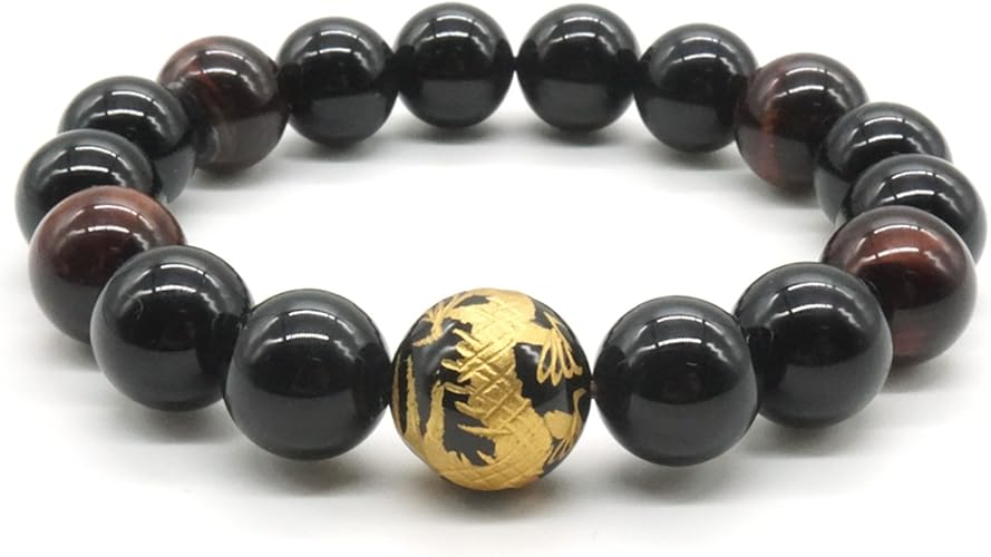 12mm Agate Noir Et Oeil De Tigre Bracelet En Pierre Roi De Dragon Sculpte Bracelet Perle Pour Hommes Amazon Fr Bijoux