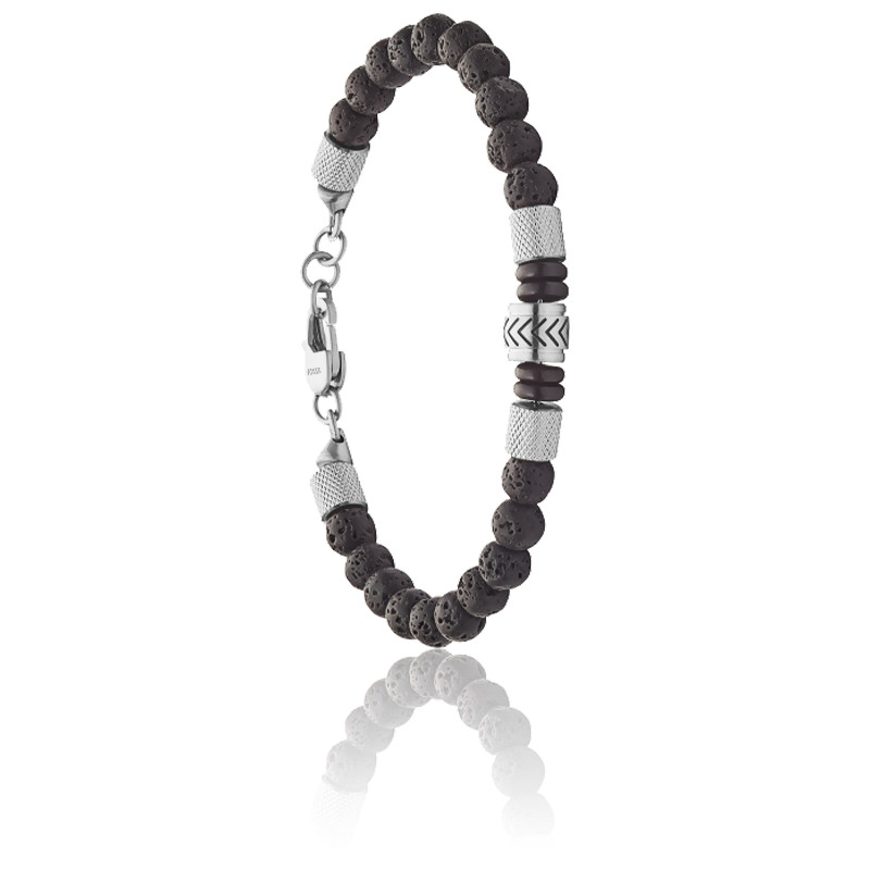 Bracelet Heritage En Perles De Pierre De Lave Et Agate Noir Jf Fossil