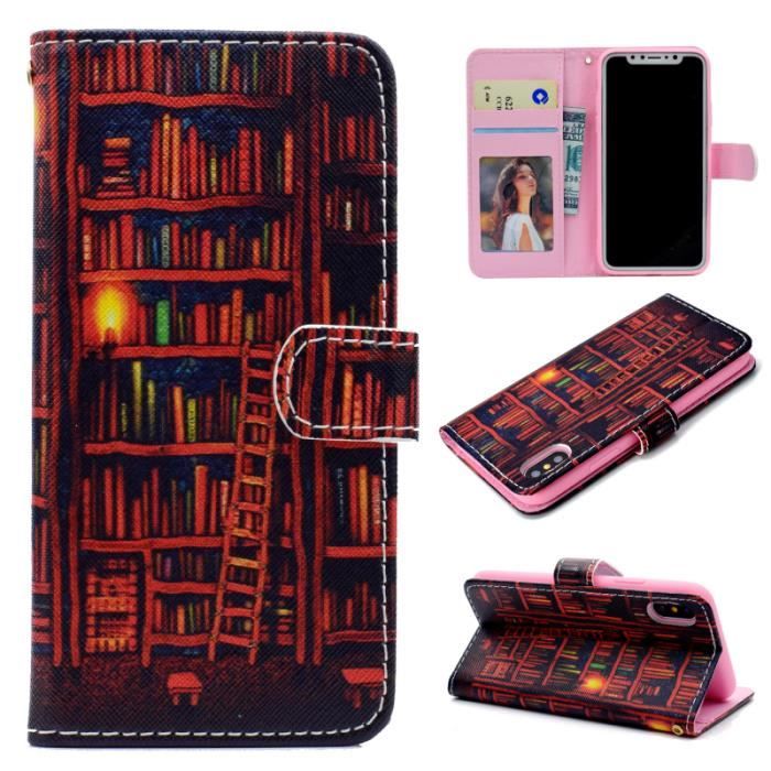 Etui Pour Apple Iphone X 5 8 Etagere A Livres Conception De Portefeuille Magnetique Housse De Protection Etui Case Achat Housse Etui Pas Cher Avis Et Meilleur Prix Cdiscount