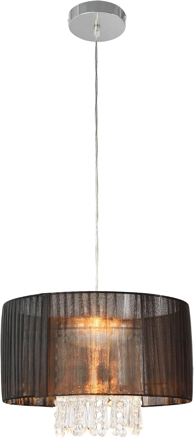 Suspension Elegante Lampe Suspendue Style Avec Cristaux Synthetiques Abat Jour En Tissu Metal E27 Hauteur Totale De 100 Cm Noir Chrome Amazon Fr Luminaires Et Eclairage