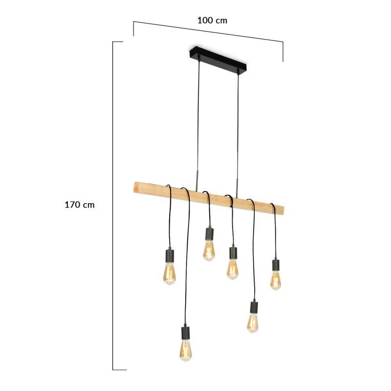 Suspension Metal Et Bois 6 Ampoules Design Industriel