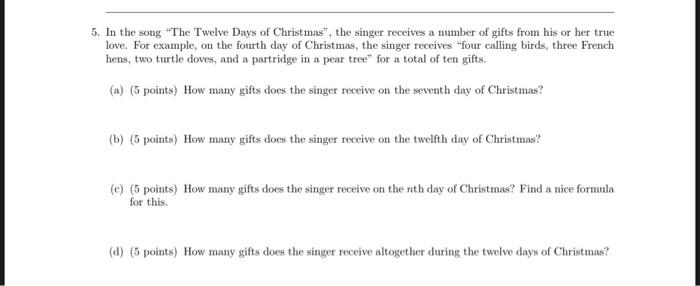 Solved 5 In The Song The Twelve Days Of Christmas The Chegg Com