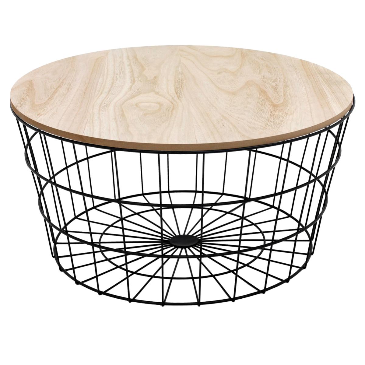 Table D Appoint Table Basse En Mdf Panier Metallique Noir Naturel O 67 Cm Leroy Merlin
