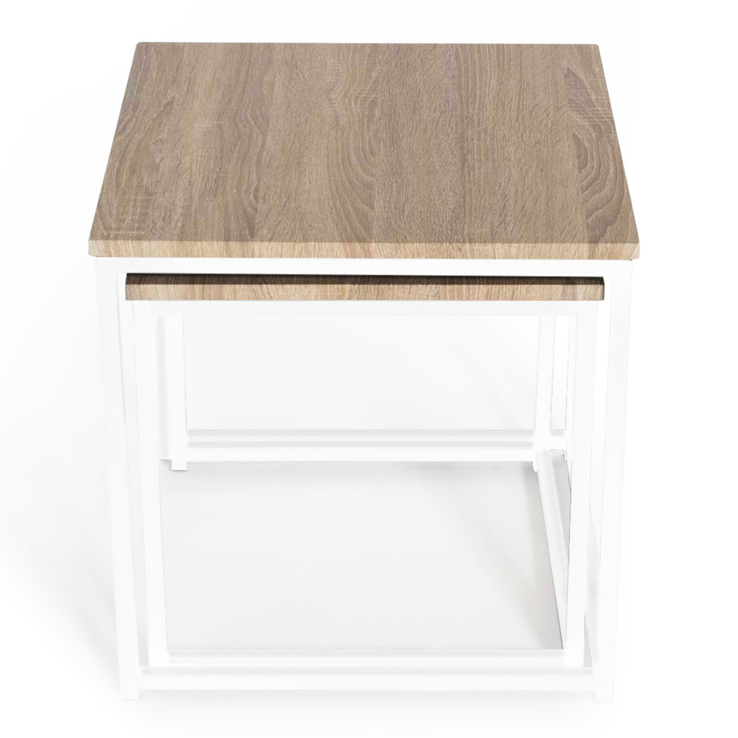 Lot De 2 Tables Basses Gigognes Detroit Design Industriel Bois Et Metal Blanc