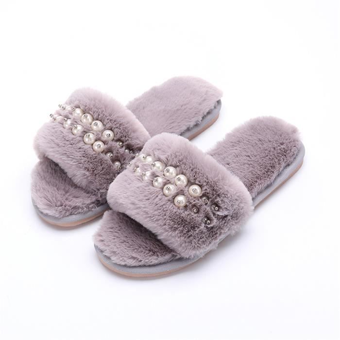Pantoufle Hiver Femme Rivet Chaussure Meilleure Qualite Chaussons Femmes Peluche Courte Chaussures Chaud Plus De Couleur Gris Achat Vente Chausson Pantoufle Cdiscount