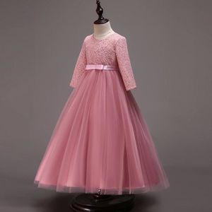 Belle Robe Ceremonie Rose Petite Fille Fleurs Col Montant Manches Longues Ref Tq001 Robe Communion Et Mariage Fille